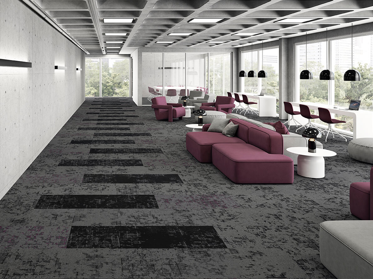 Ковровая плитка с универсальным ненавязчивым рисунком, позволит ее вписать в любой современный интерьер. Изготовлена из ниток SDN, которые устойчивы к любым пятнам.